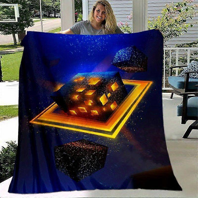 Pixel Art Mining Crafts Party Mine Style Game Luminous Cubes Glowing Shadows Blue Background Soft Flannel Blanket