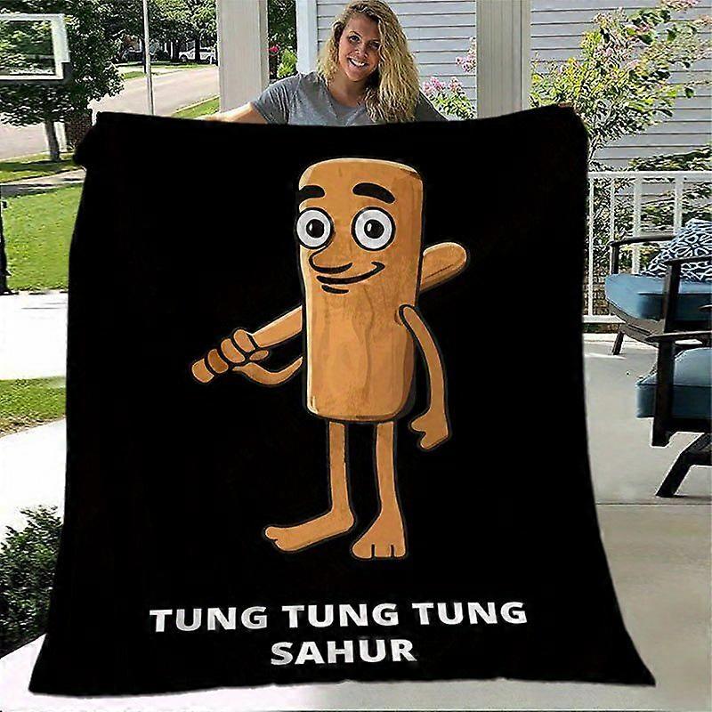 TungTungSahur Italian Brainrot vs Sausage Character Retro Flannel Blanket