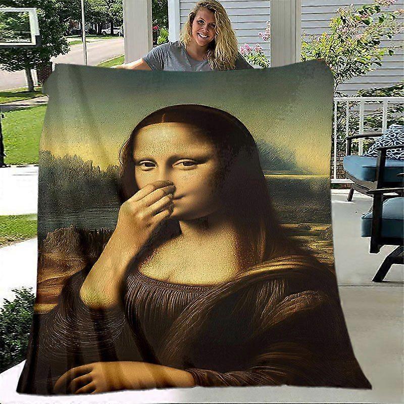 Mona Lisa Smile Mystery Throw Blanket Vintage Cartoon Print