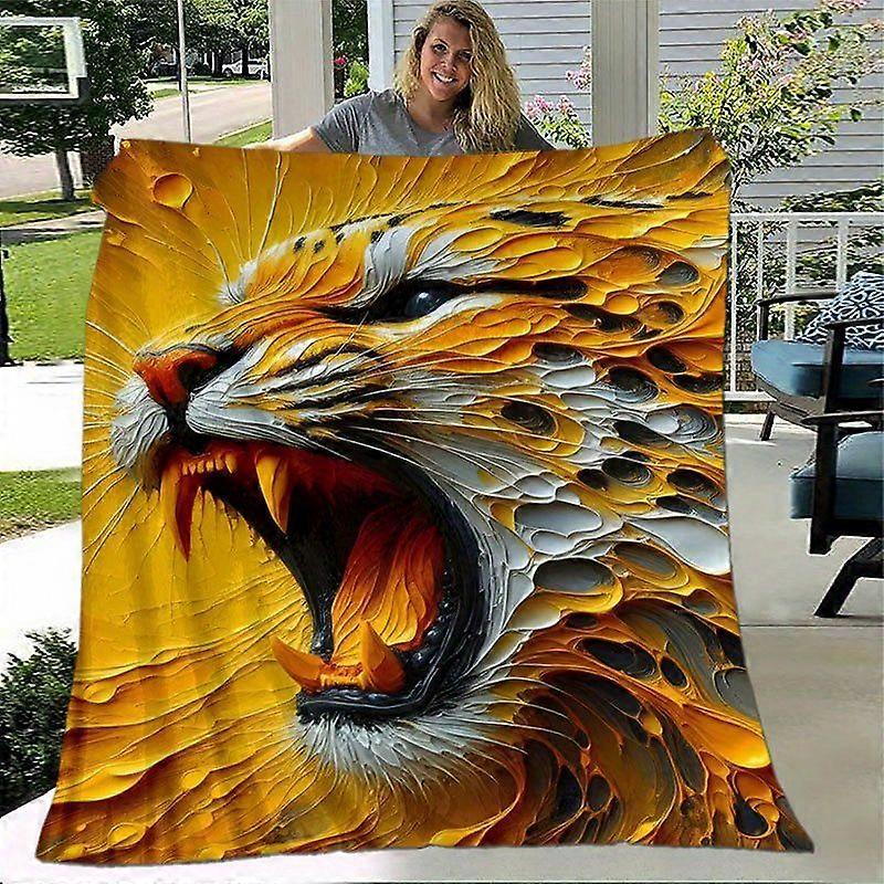 Roaring Tiger Blanket Soft Flannel Throw with Fierce Big Cat Design in Orange