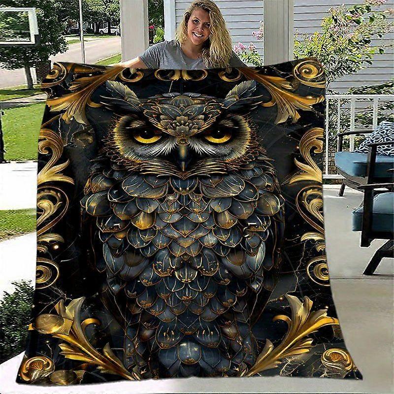 Mystical Night Sky Owl Throw Blanket Dark Background with Golden Eyes