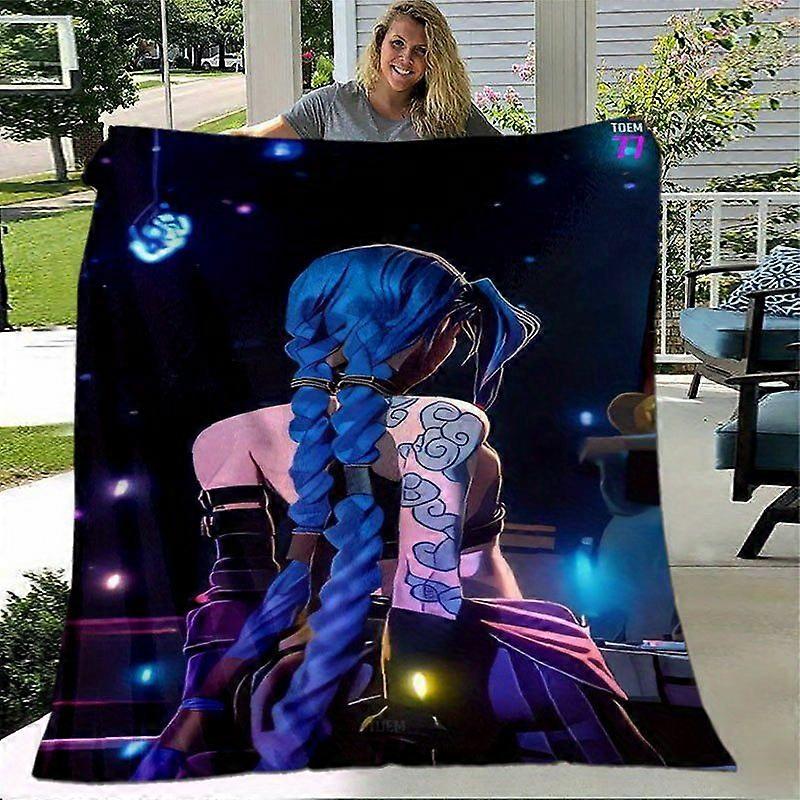 Acrane Jinx Blue Girl Tattoo Night Scene Soft Flannel Blanket in Bright Perfect for All Seasons