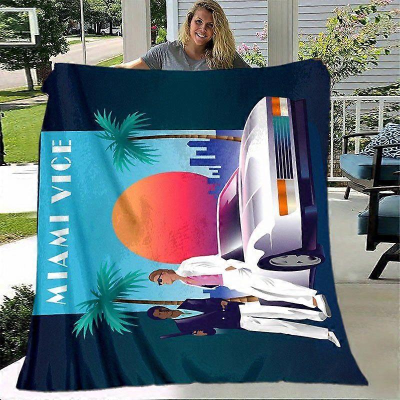 Miami Vice Retro TV Show Throw Blanket Soft Flannel Blanket with Vintage Cars