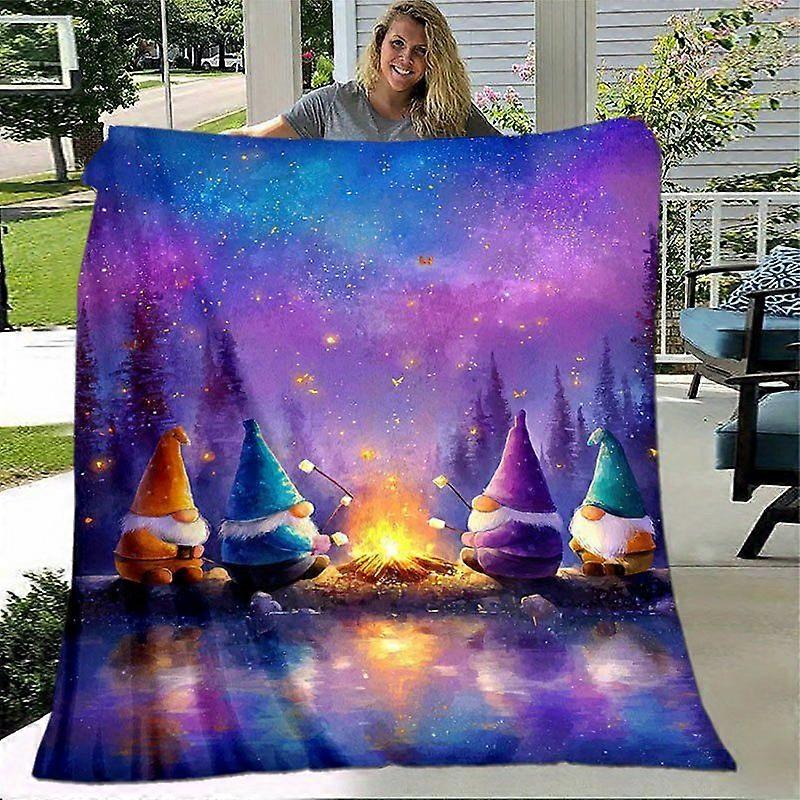 Gnome Themed Gnomes Campfire Night Sky Reflections Soft Flannel Blanket Vibrant