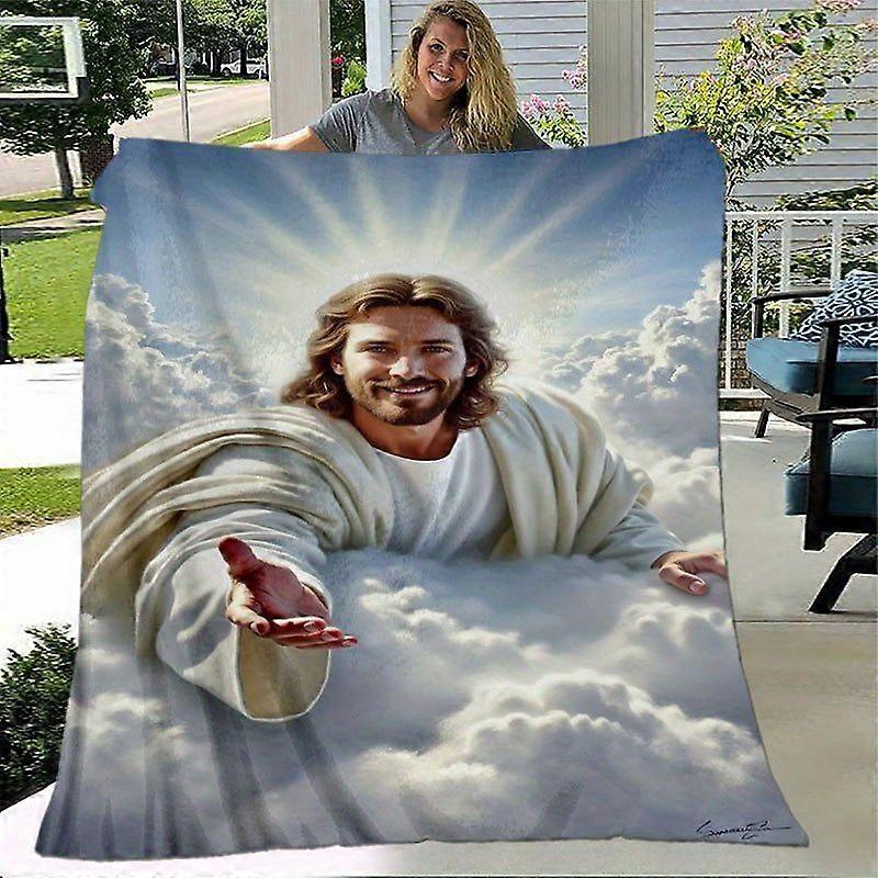 Soft Flannel Religious Blanket Jesus with Heavenly Hands & Divine Light