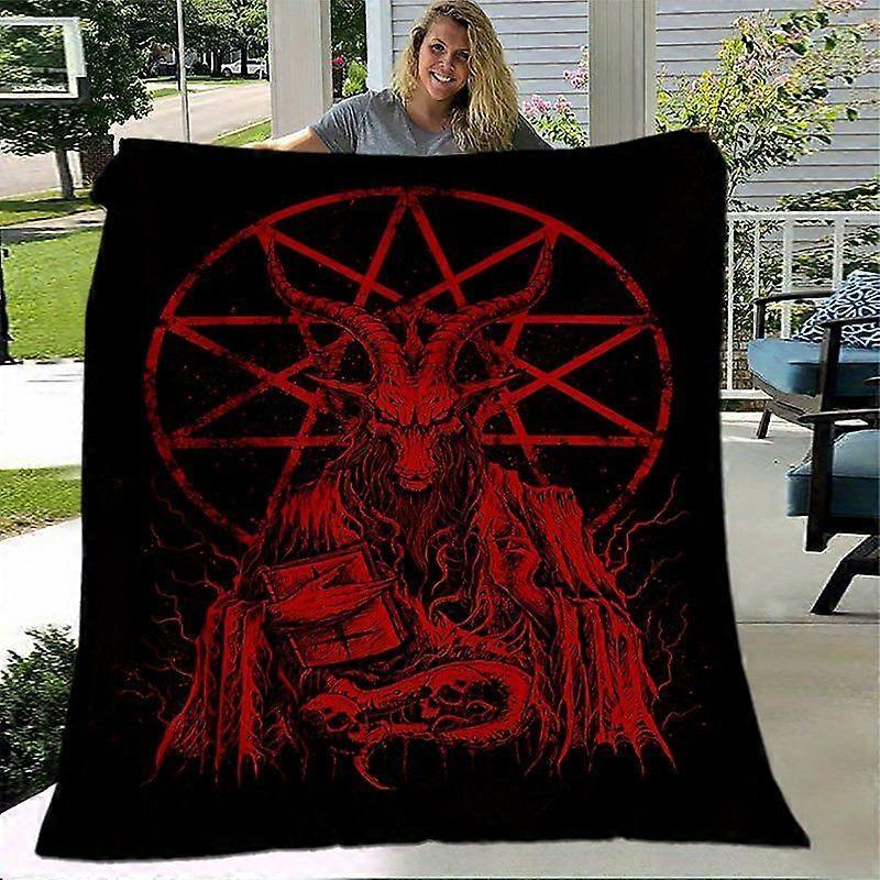 HELLBOUND 666Inspired Demonic Pentagram Horned Beast Soft Flannel Blanket Vibrant Nostalgic Bedding