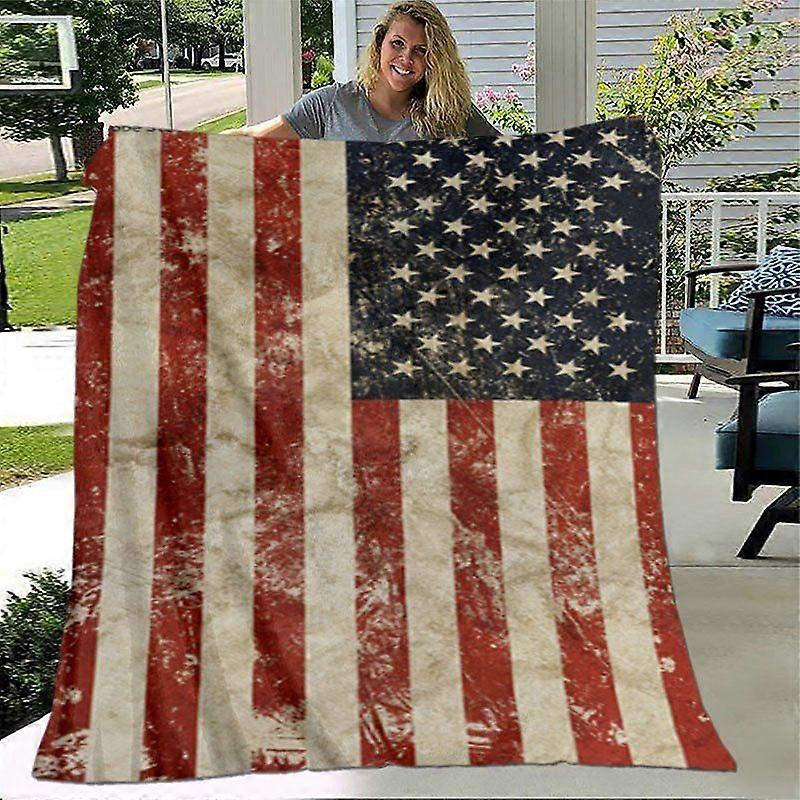 Vintage USA American Flag Grunge Texture Soft Flannel Blanket Retro Stars & Stripes Design