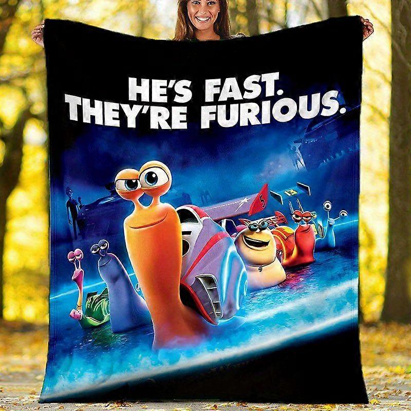 TURBOTheme Blanket Soft Cozy Polyester Knit with Turbo-Charged Snails & "HE's FAST. THEY'RE FURIOUS."