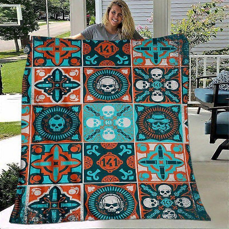 black Ops Modern Warfare Skulls, Tattoo, Pattern, Ornate, Geometric, Colorful, Repeating, Decorative, Artistic Soft Flannel Blanket