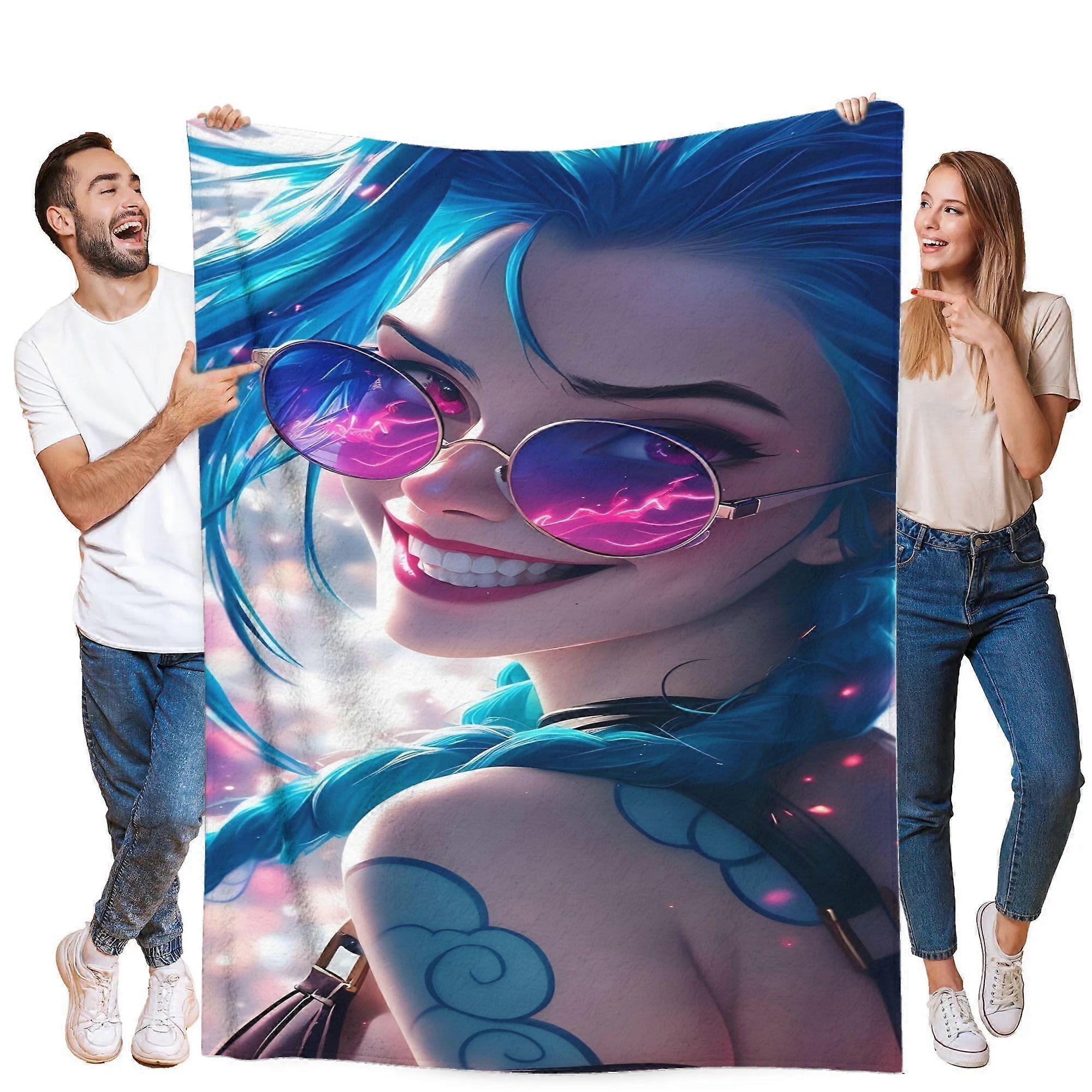 Super Soft Flannel Blanket Plush All Season Throw with Vibrant Blue Haired Character & Pink Purple Accents Cozy Living Room