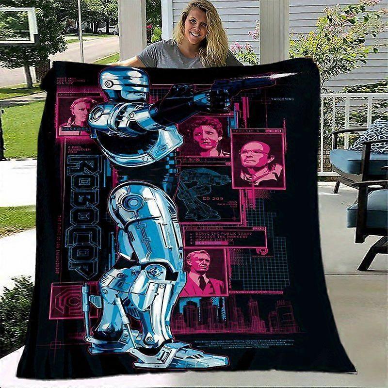 RoboCop Blanket Soft Flannel Cyberpunk Throw with Neon Blue & Pink Accents