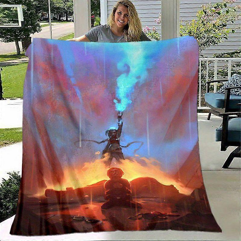 Acrane Jinx Rainbow Canyon Flame Battle Fantasy Blanket Soft Flannel Throw with Retro Gaming Action Scene