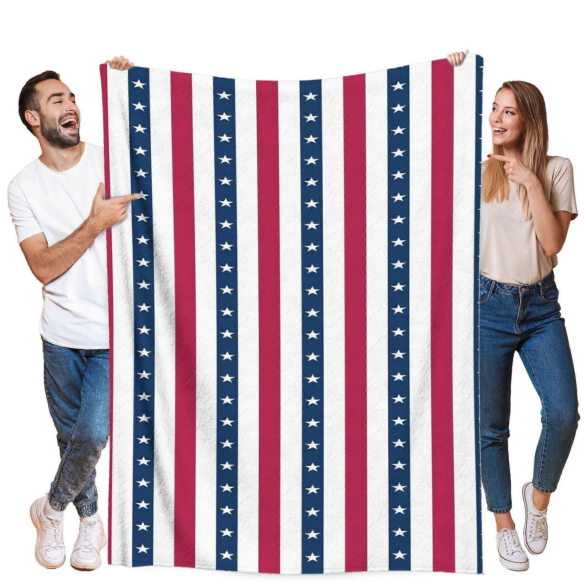 Flannel Blanket with Star and Vertical Stripe Design Ultra Soft Warm and Comfortable for Living Room