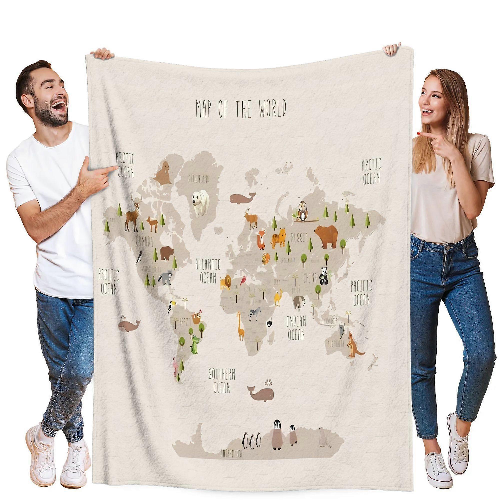 World Map Design Flannel Blanket Ultra Soft All Season Throw with Continents Countries