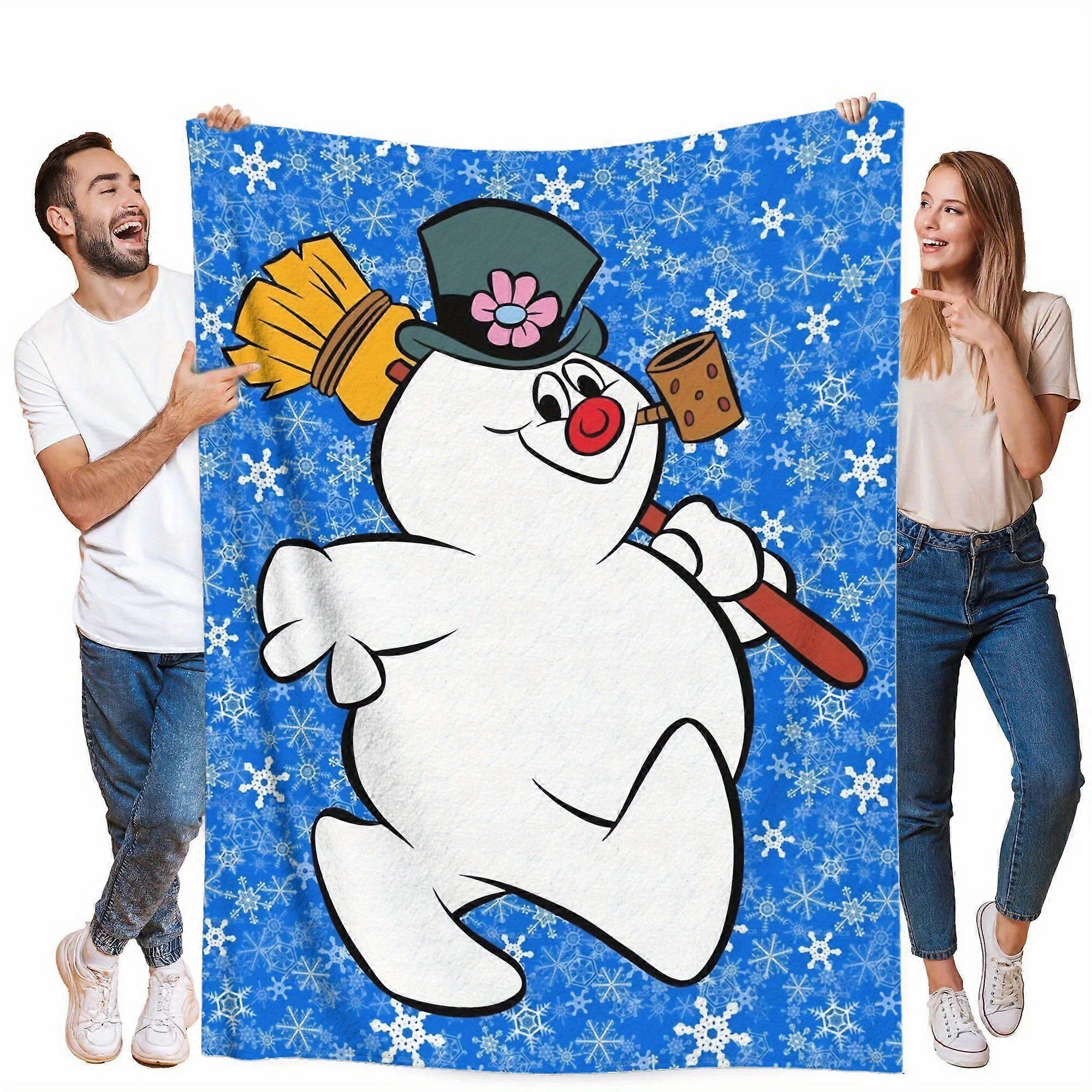Snowman with Broomstick Ultra Soft Flannel Throw Blanket Whimsical Winter Design with Festive Snowflakes
