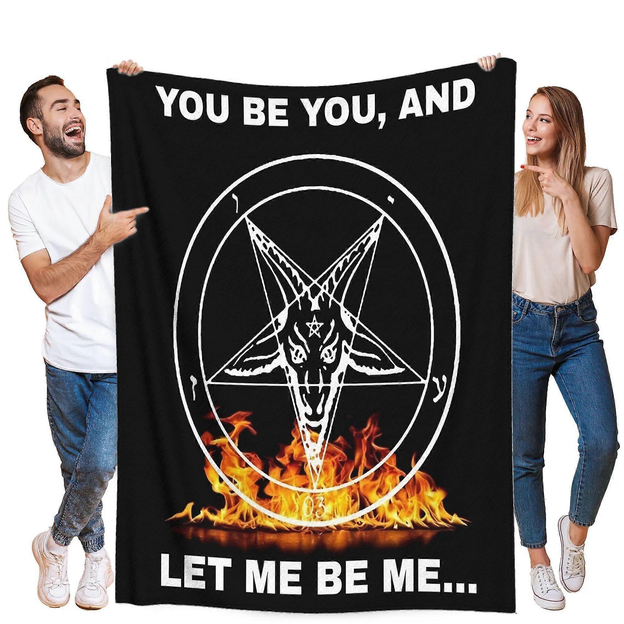 Occult Gothic Throw Blanket Heavy Metal Inspired Soft Flannel Bedspread with Baphomet & Pentagram Design All Season Couch Office
