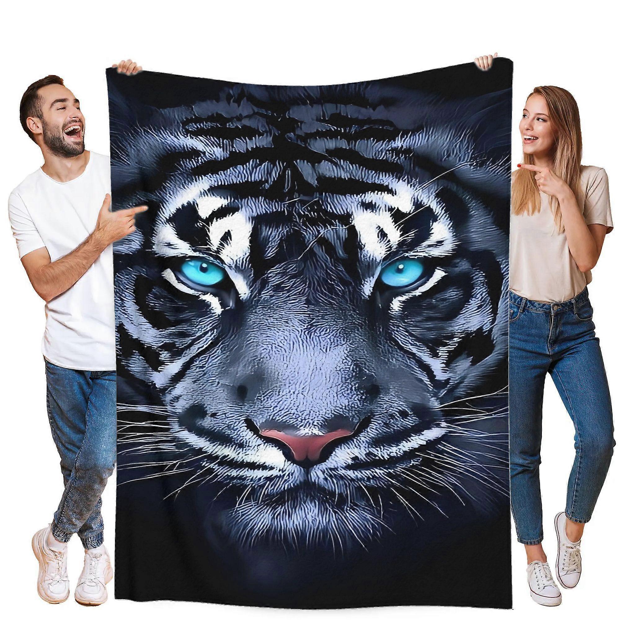 Luxurious Flannel Blanket Ultra Soft Plush Throw with Black & Blue Accent Eyes All Season Couch