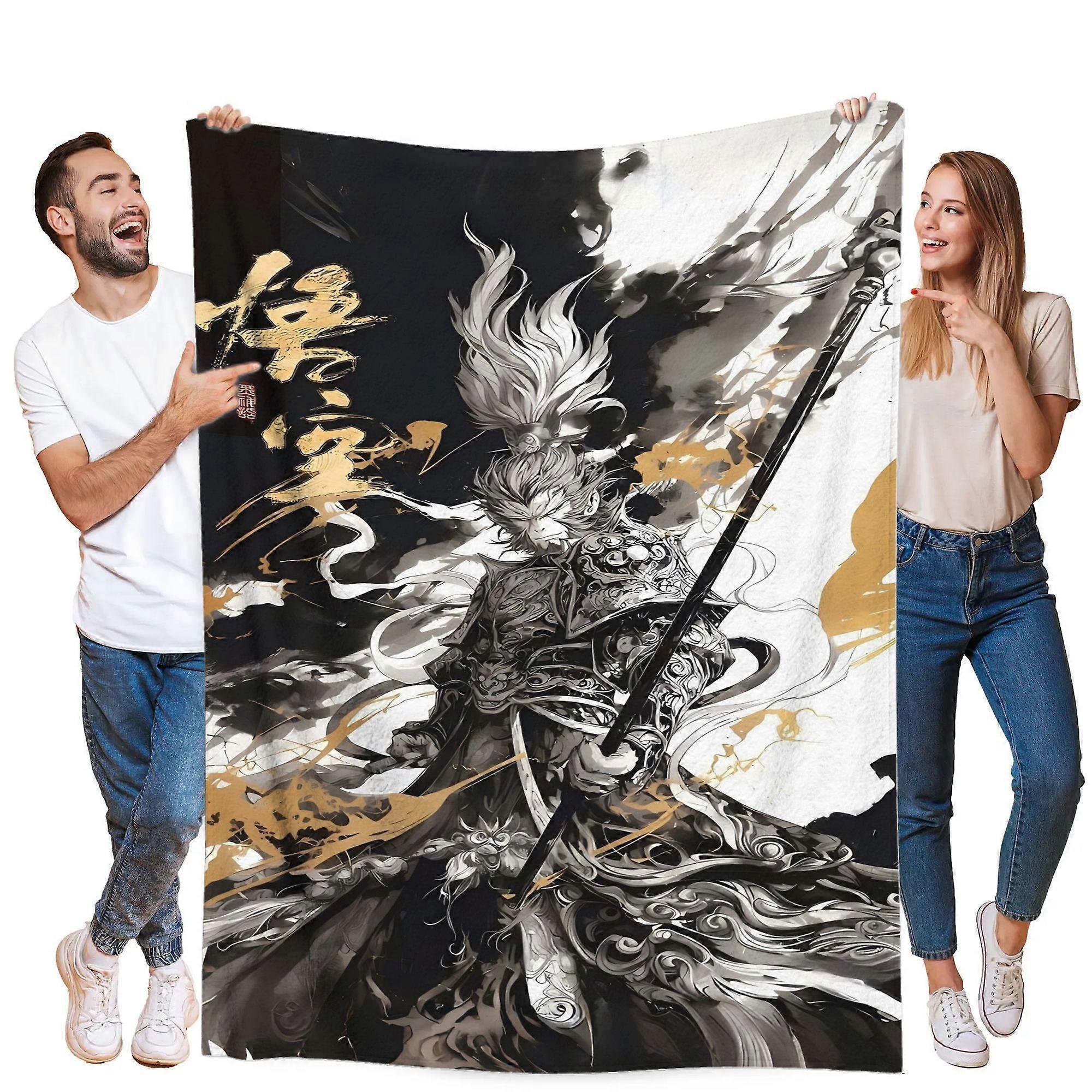 WUKONG Ultra Soft Flannel Blanket Luxury Plush Throw with Elegant Sword design in Black White & Golden All Season Couch