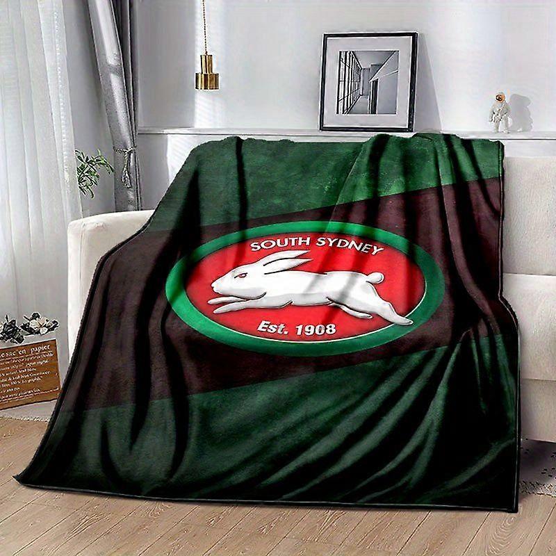 South Sydney Rabbits Rugby Theme Blanket Soft & Cozy Polyester Knit Green & Brown with White Rabbit Logo