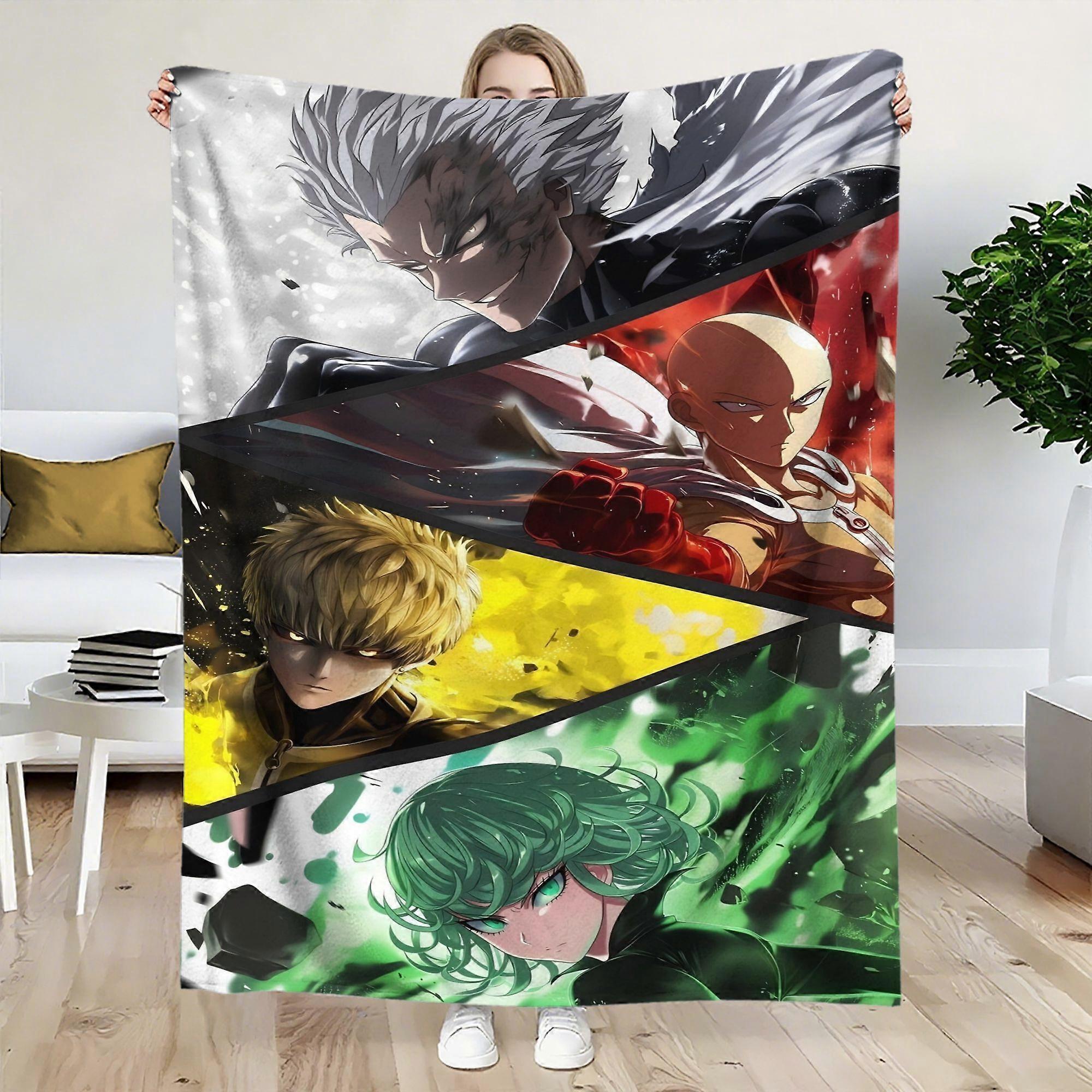 One Punch for Man Anime Themed Blanket Saitama's Iconic Manga Design Soft Flannel Bedspread Suitable