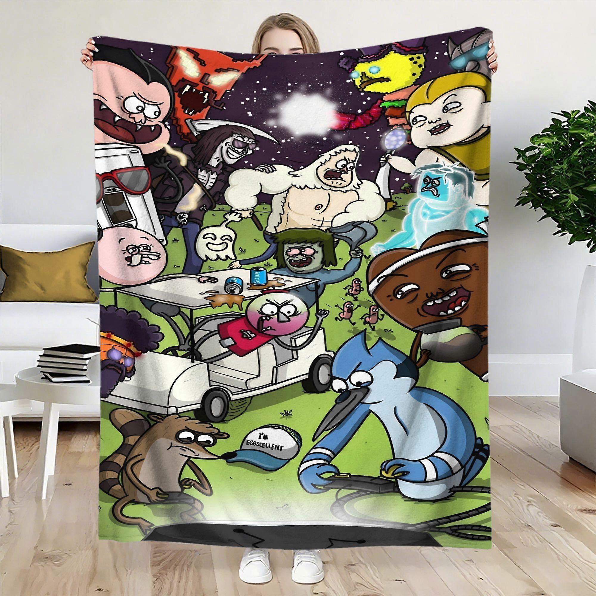 Regular Show Themed Blanket with Mordecai & Rigby Soft Flannel Bedspread Suitable for Couch Office