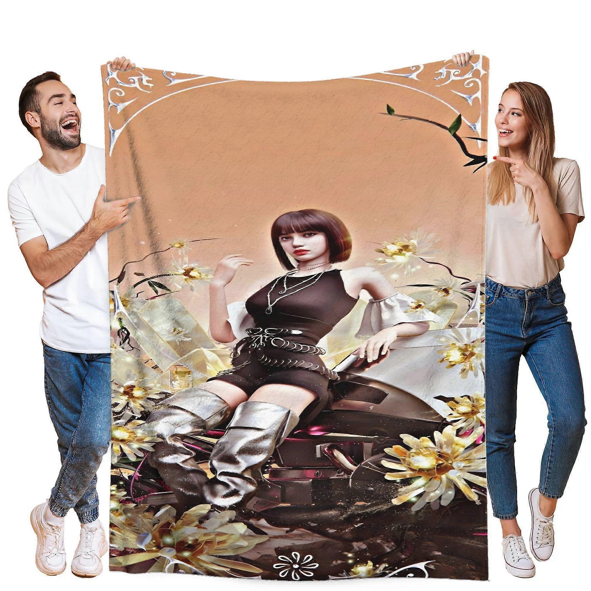 LISA Ultra Soft Fleece Blanket Contemporary Floral & Woman Design in Beige/Golden/Brown All Season Luxury Throw for Bed