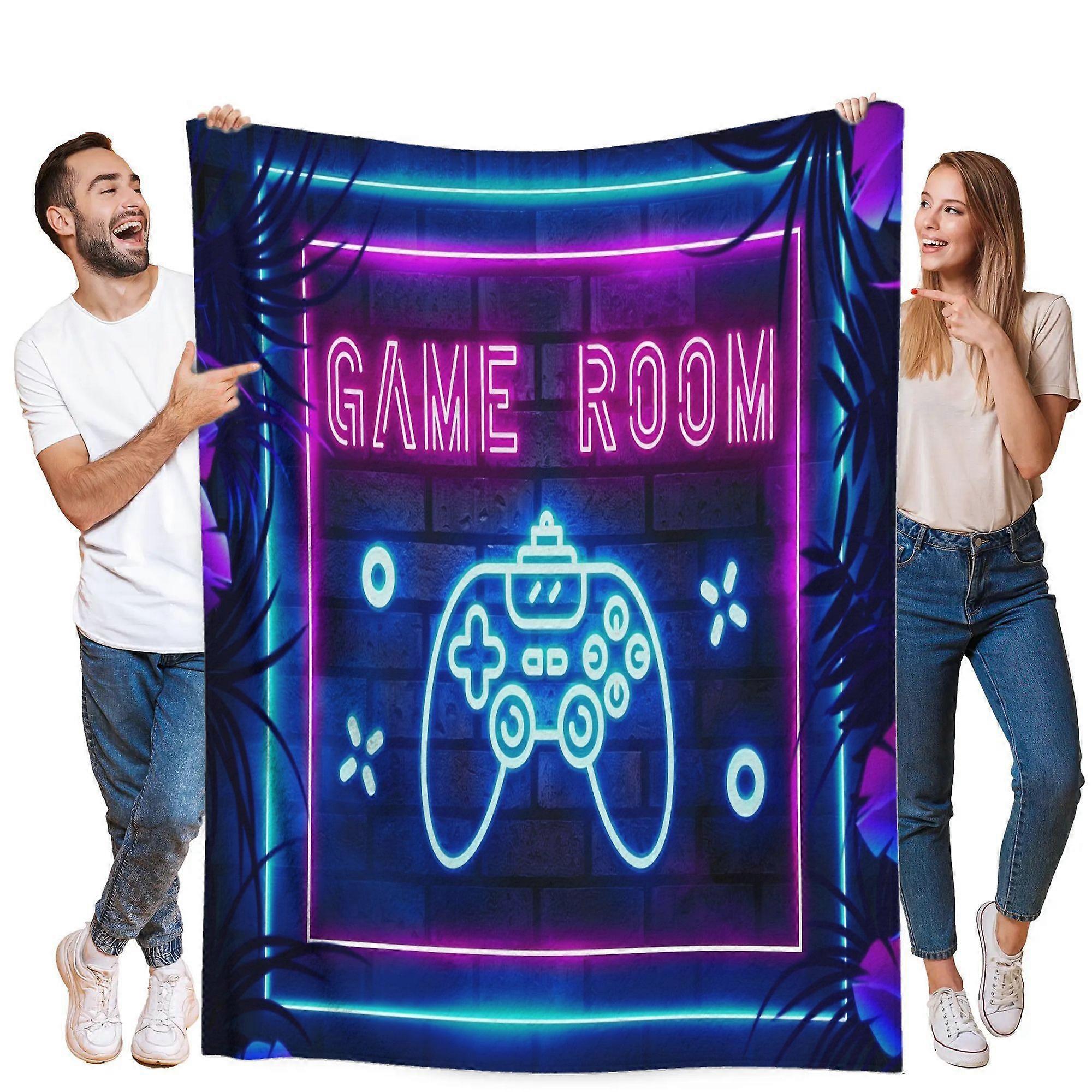 Game Room Neon Glow in the Dark Video Game Controller Design Fleece Blanket Ultra Soft Flannel