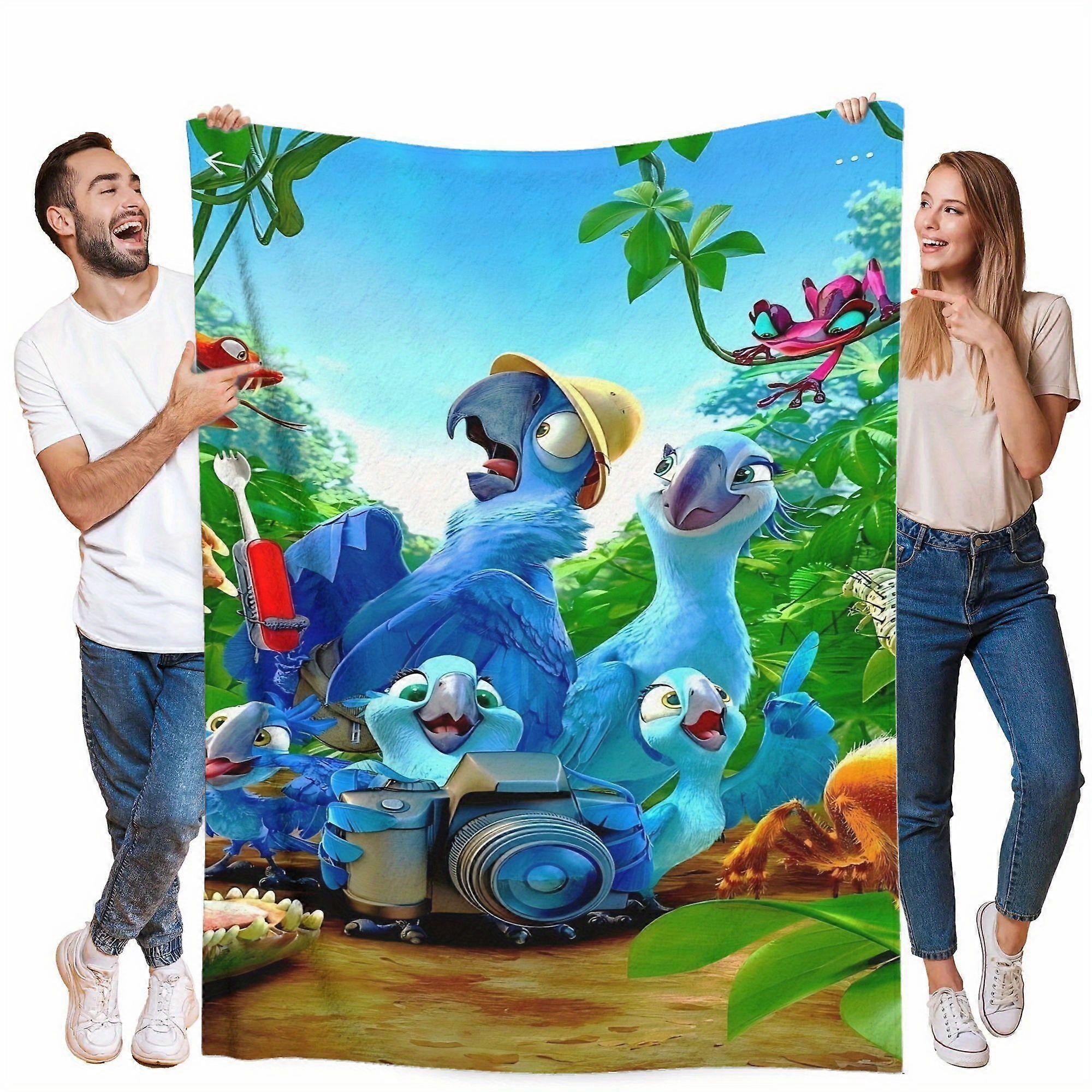 Blue Parrot Family Tropical Jungle Throw Blanket Ultra Soft Flannel All Season Couch Bed