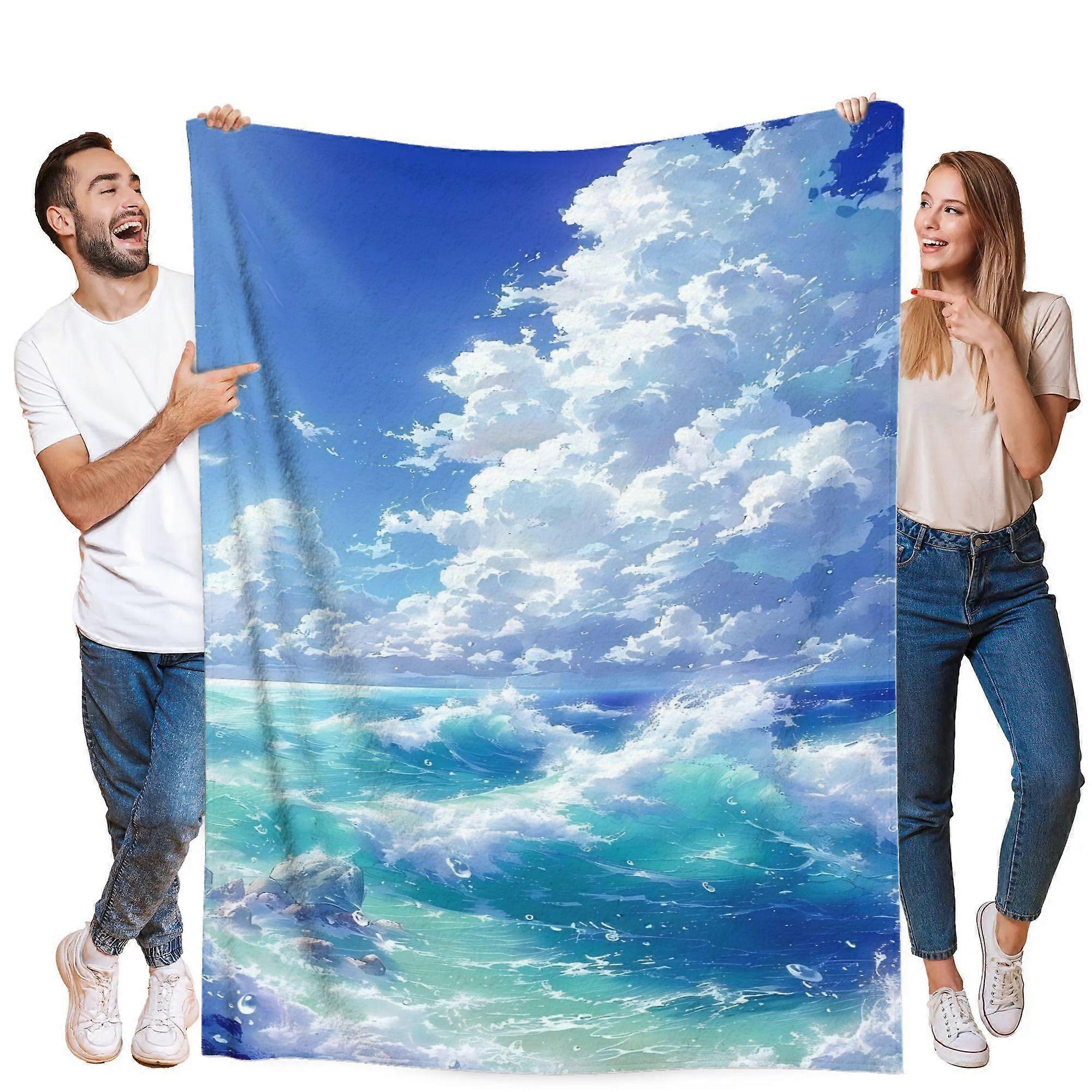 Azure Coastline Creative Inspiration Design Ultra Soft Flannel Blanket Warm and Cozy Living Room Blanket
