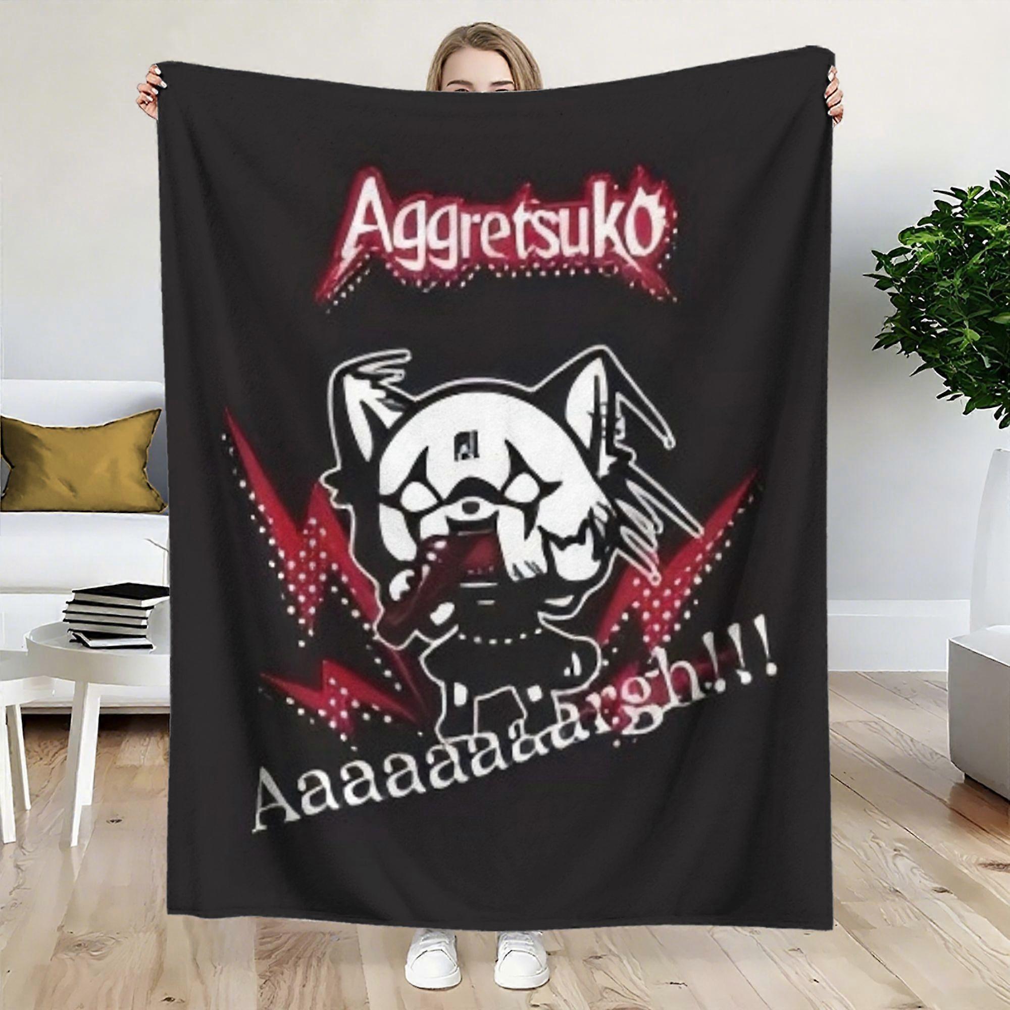 Aggretsuko Screams with Red Background Sanrio Luxury Fleece Blanket Soft Lightweight