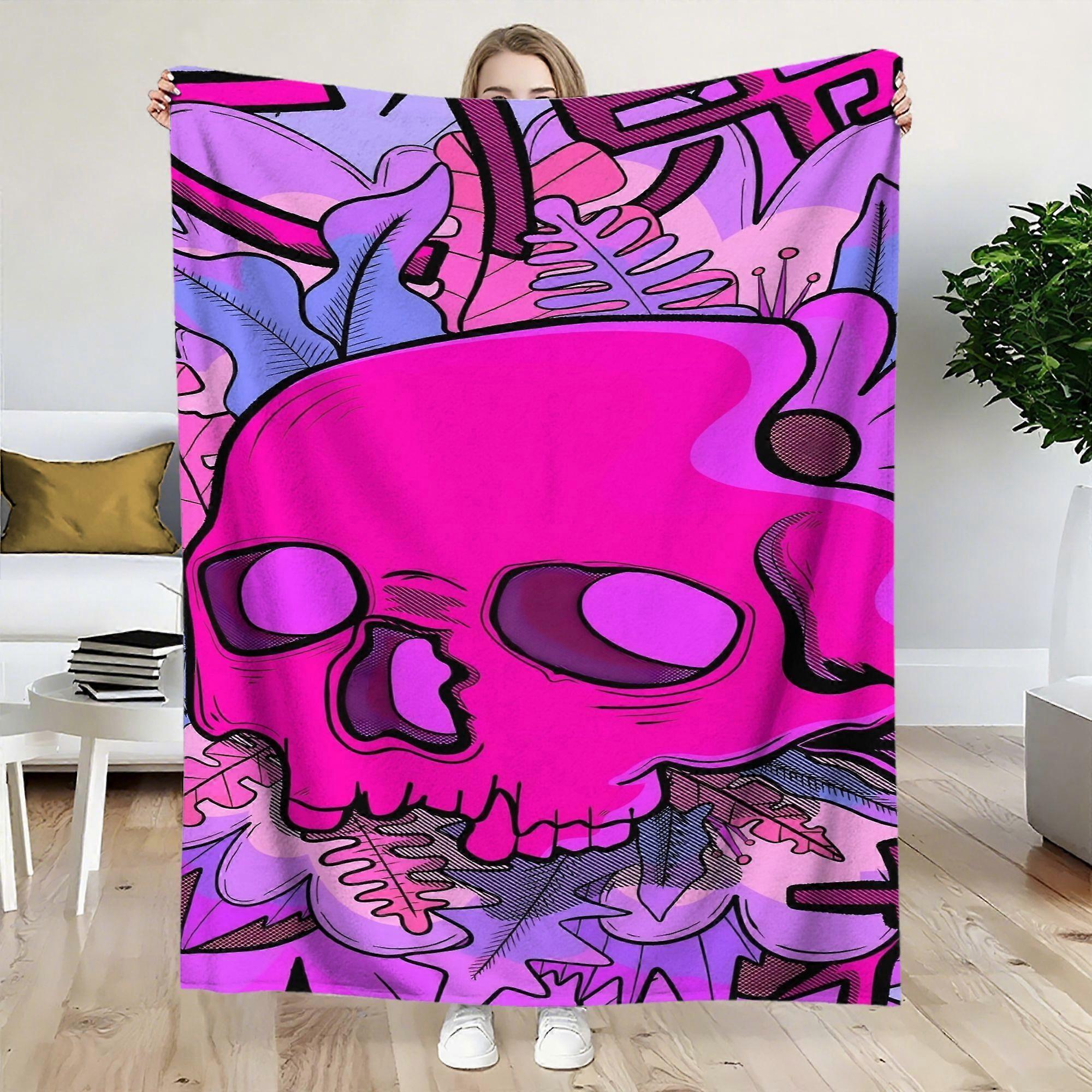 Neon Pink Skull Luxury Flannel Blanket Soft Lightweight