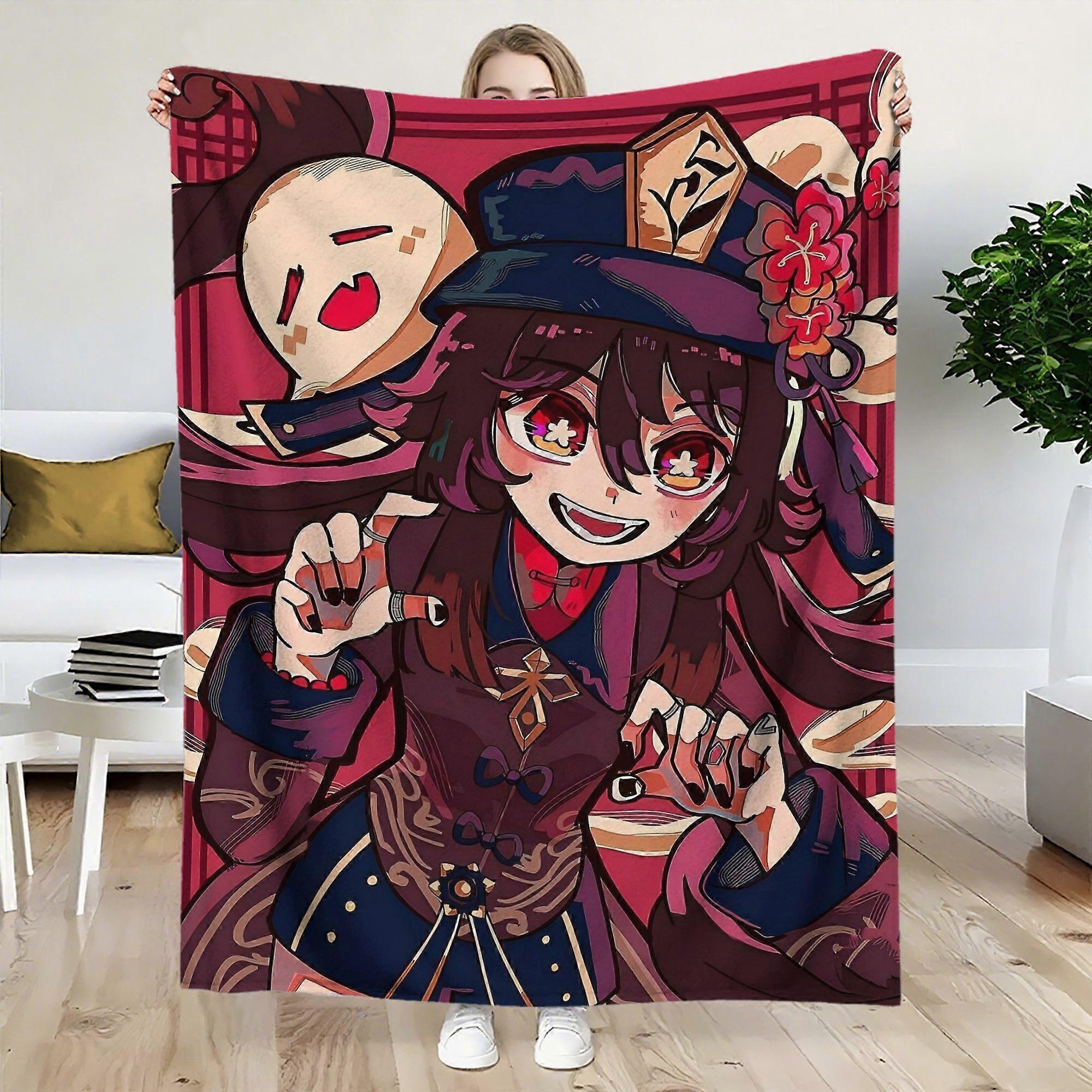 Anime Girl in Red and Black Attire with Mask Luxury Flannel Blanket Soft Lightweight