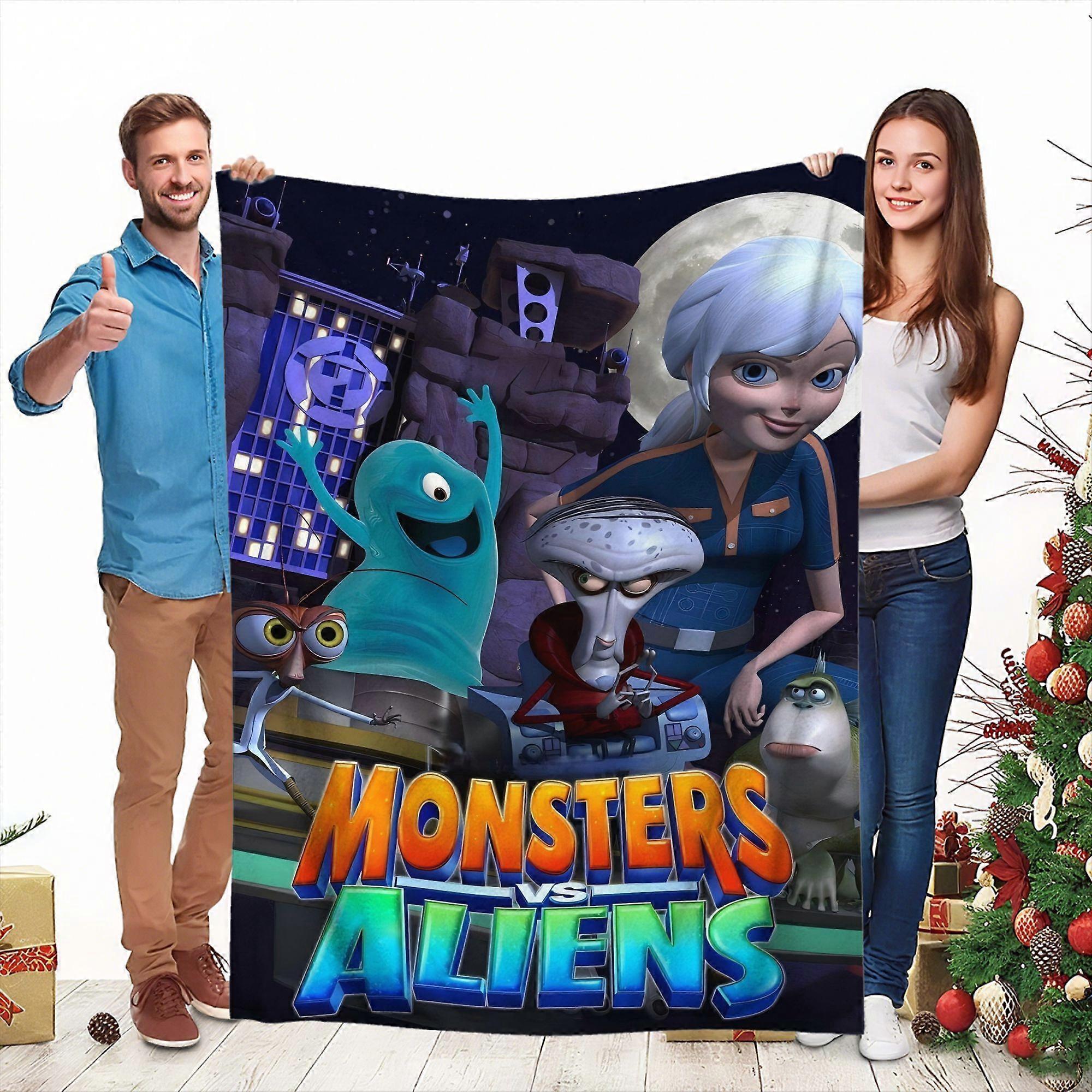 Monsters vs. Aliens Movie Poster Flannel Blanket Bold and Charming Style All Season Use