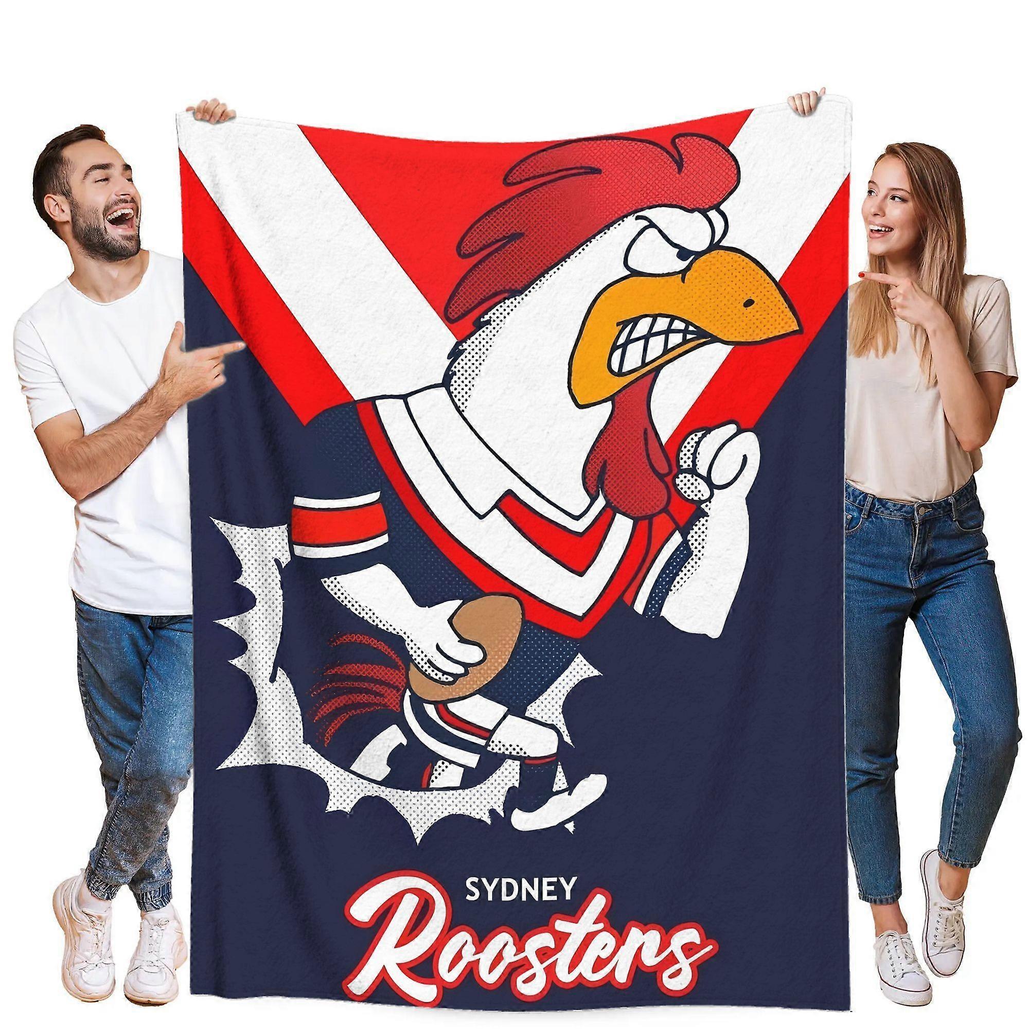 Sydney Roosters Ultra Soft Flannel Blanket Vibrant Red & White Cartoon Design