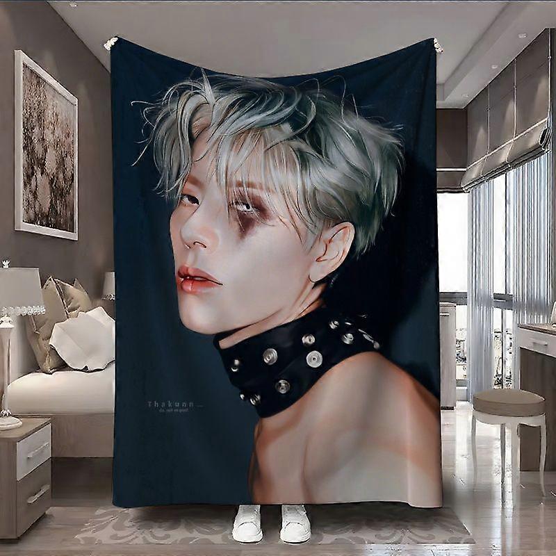 Jacky Wang Silvery Short Hair Digital Portrait SThemed Pattern Ultra Soft Flannel Blanket