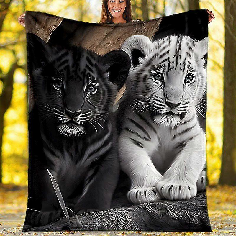 A Cozy And Warm Flannel Blanket Featuring a Tiger Cub Design Perfect for Use on a Couch