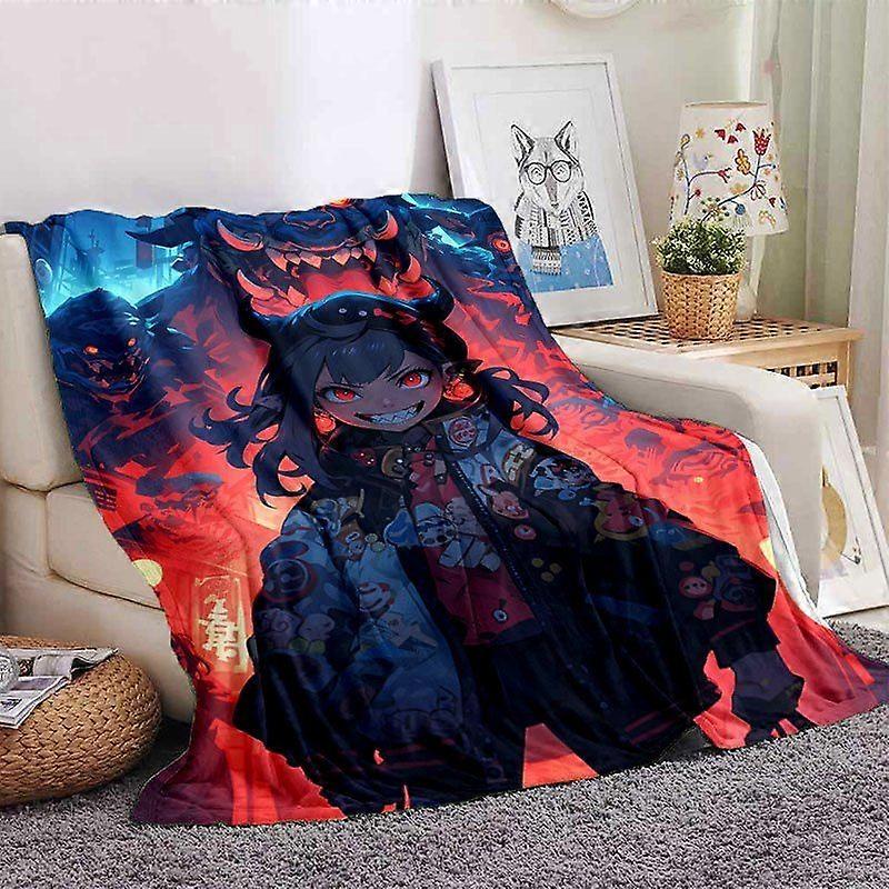 Cozy Anime-Themed Flannel Blanket with Evil Girl Pattern - Soft Warm All-Season Throw for Sofa Bed