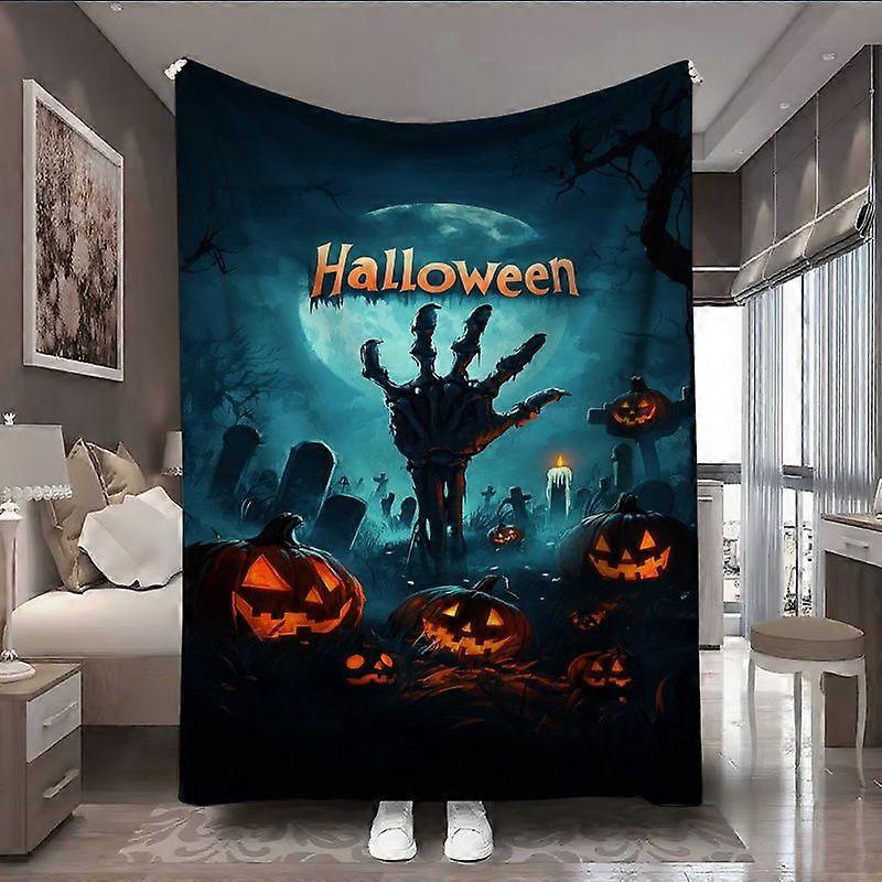 Halloween Cemetery Horror Illustration Theme UltraSoft Digital Print Flannel Blanket