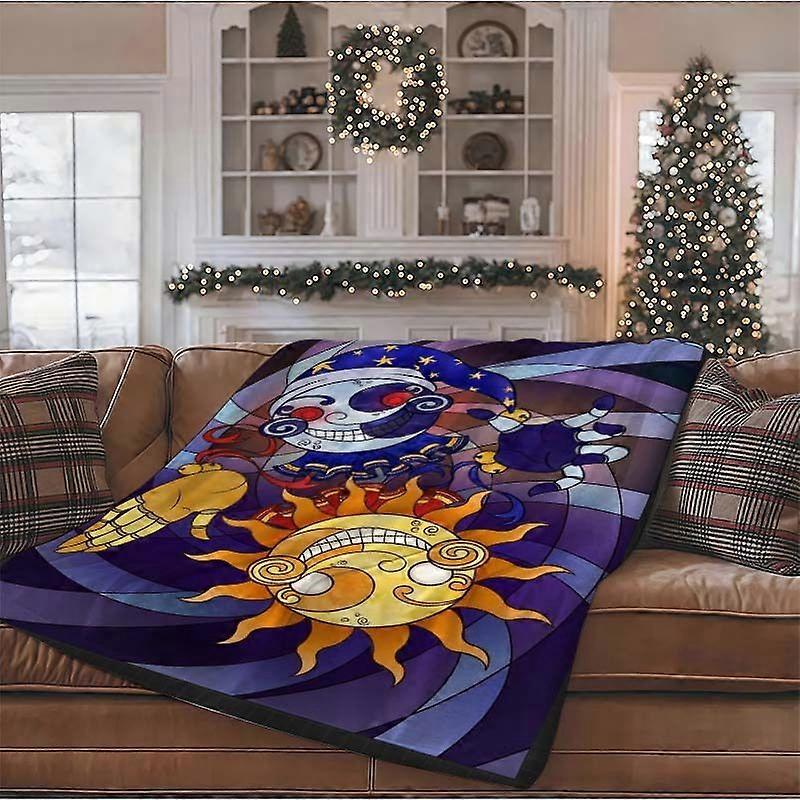 Daycare Attendant Fantasy Day and Night Mask Sun Pattern Printed Soft Blanket All-Season Use