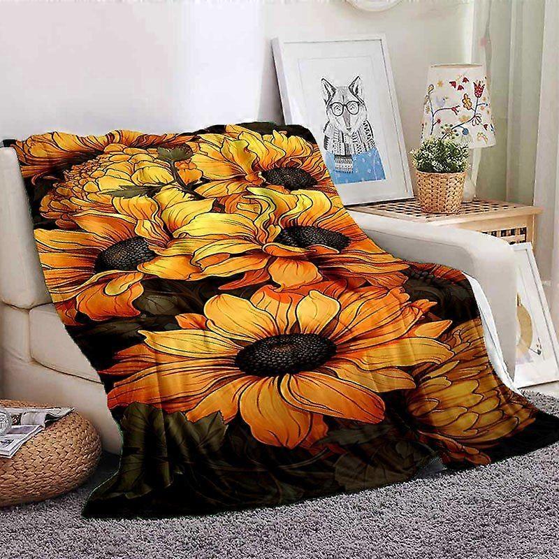 A Cozy And Warm Flannel Blanket Featuring a Sunflower Design Perfect for Use on a Sofa