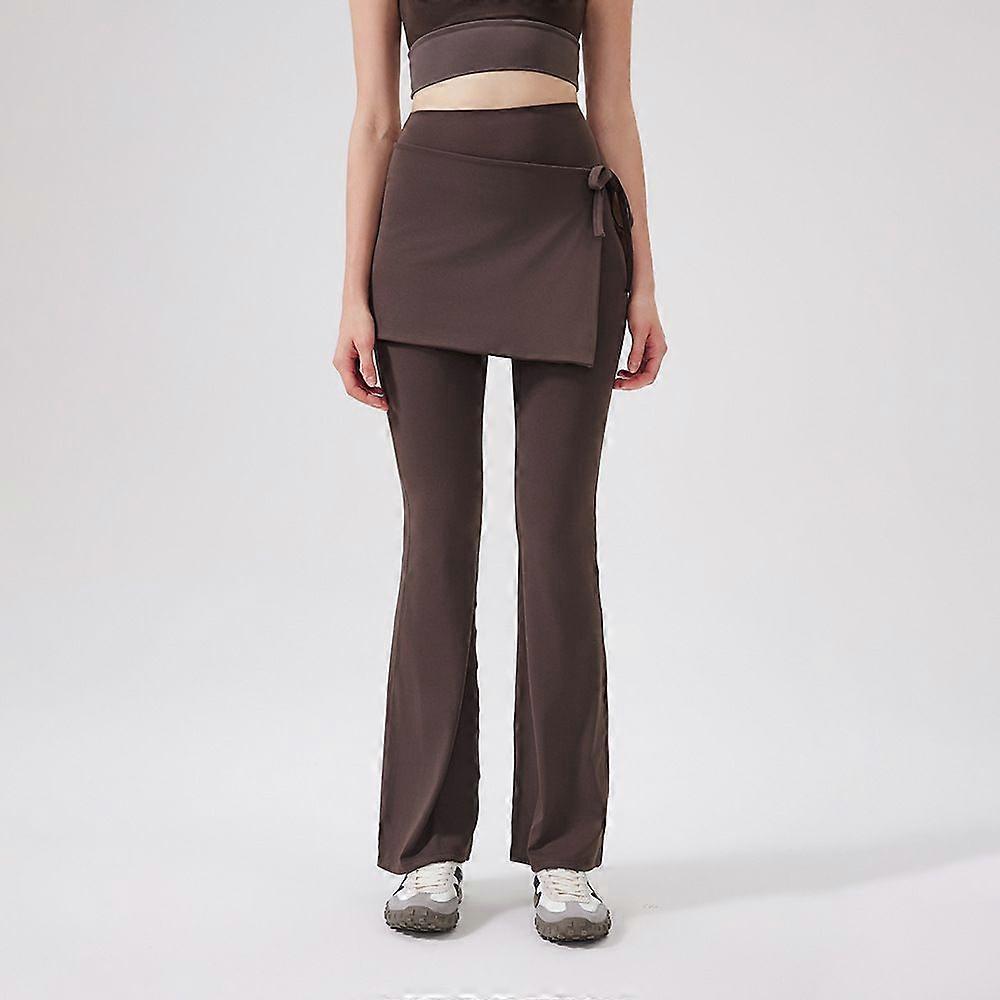Women's High Waist Cool & Anti-Bacterial Yoga Pants 2-Piece Set Breathable Running Workout Flare Leggings Gray/White/Almond/Brown/Black S/M/L/XL