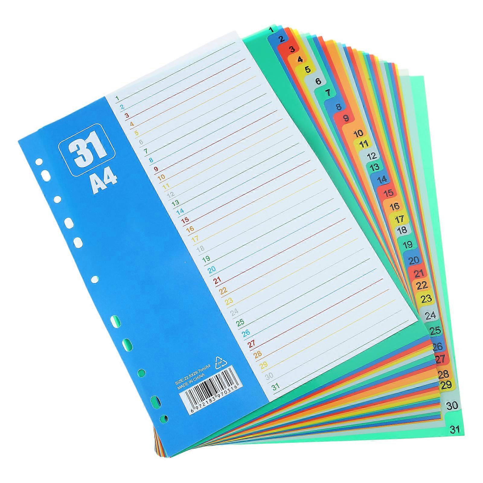 31 Sheets Folder Dividers A 4 Subject Dividers Practical File Dividers with 11 Hole Binders Dividers for School Office Multicolor