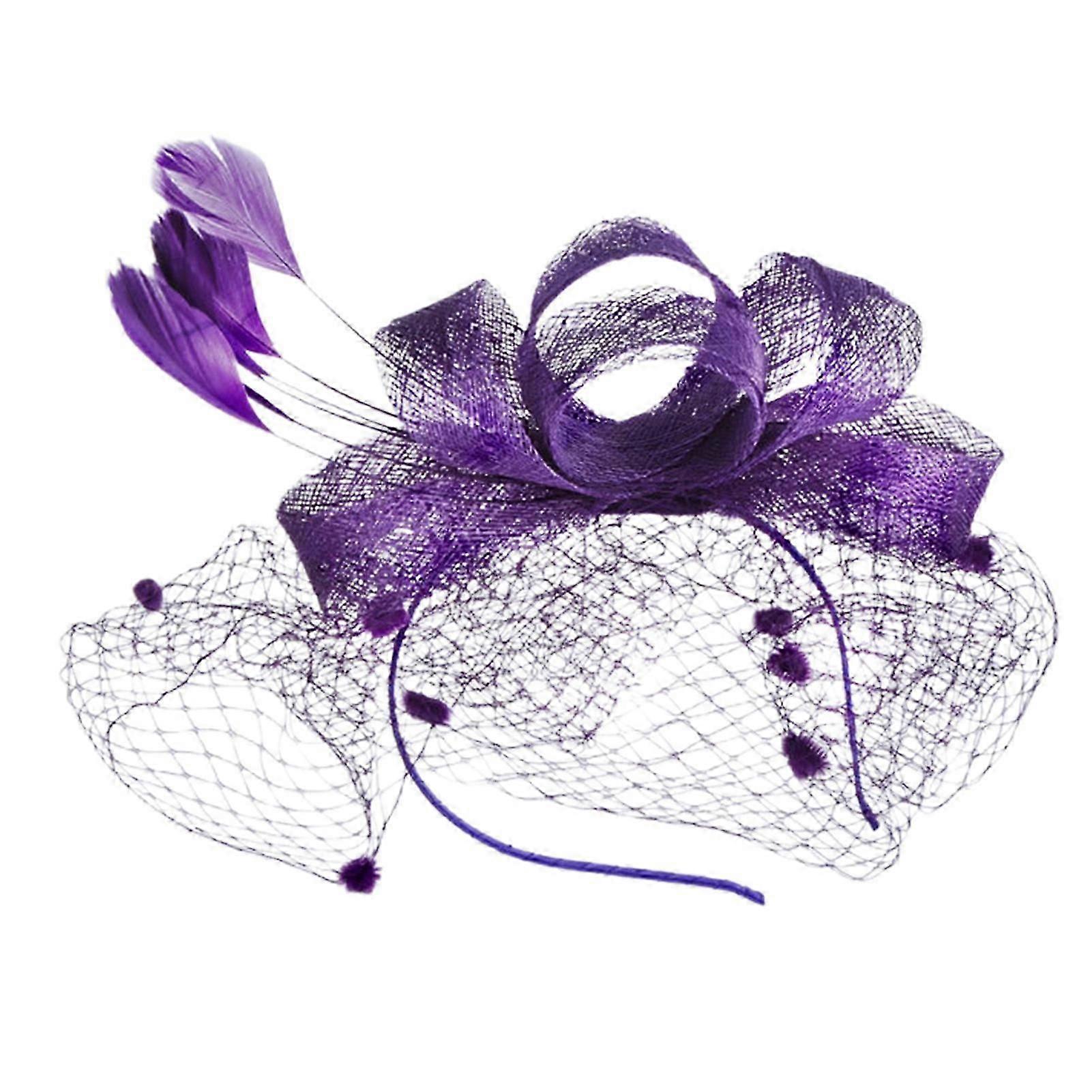 Non-slip Exquisite Fascinator Hat with Hair Hoop Faux Feather Hemp Mesh Party Headwear for Stage Performance 0725 Edition 0116