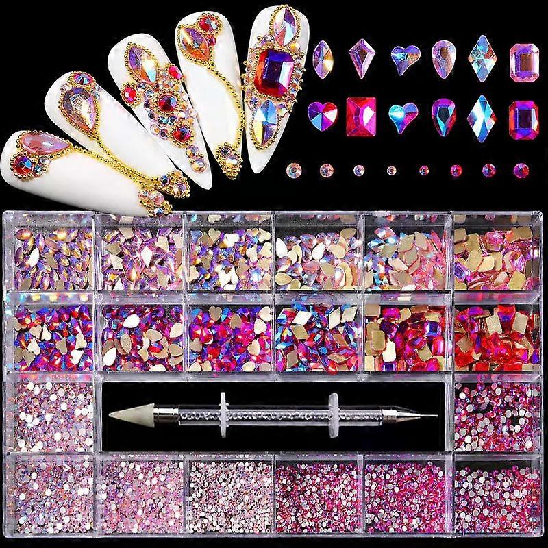 1000/3100pcs Shiny Diamond Nail Art Rhinestones Crystal Decorations Set AB Glass 1pcs Pick Up Pen In Grids Box 21 Shape