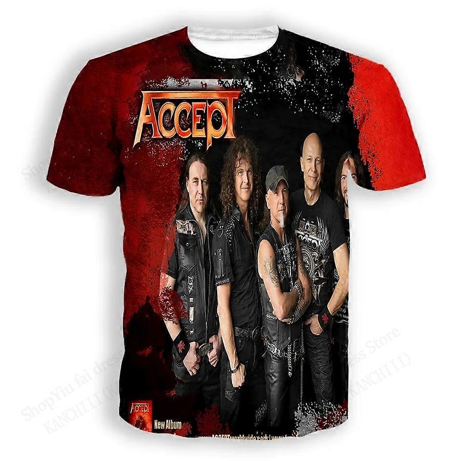 Rock Band Accept 3d Print T-shirt Men Fashion Plus Size Short Sleeve Tshirt Kids Hip Hop Sports Tops Tees Men's Clothing Vintage
