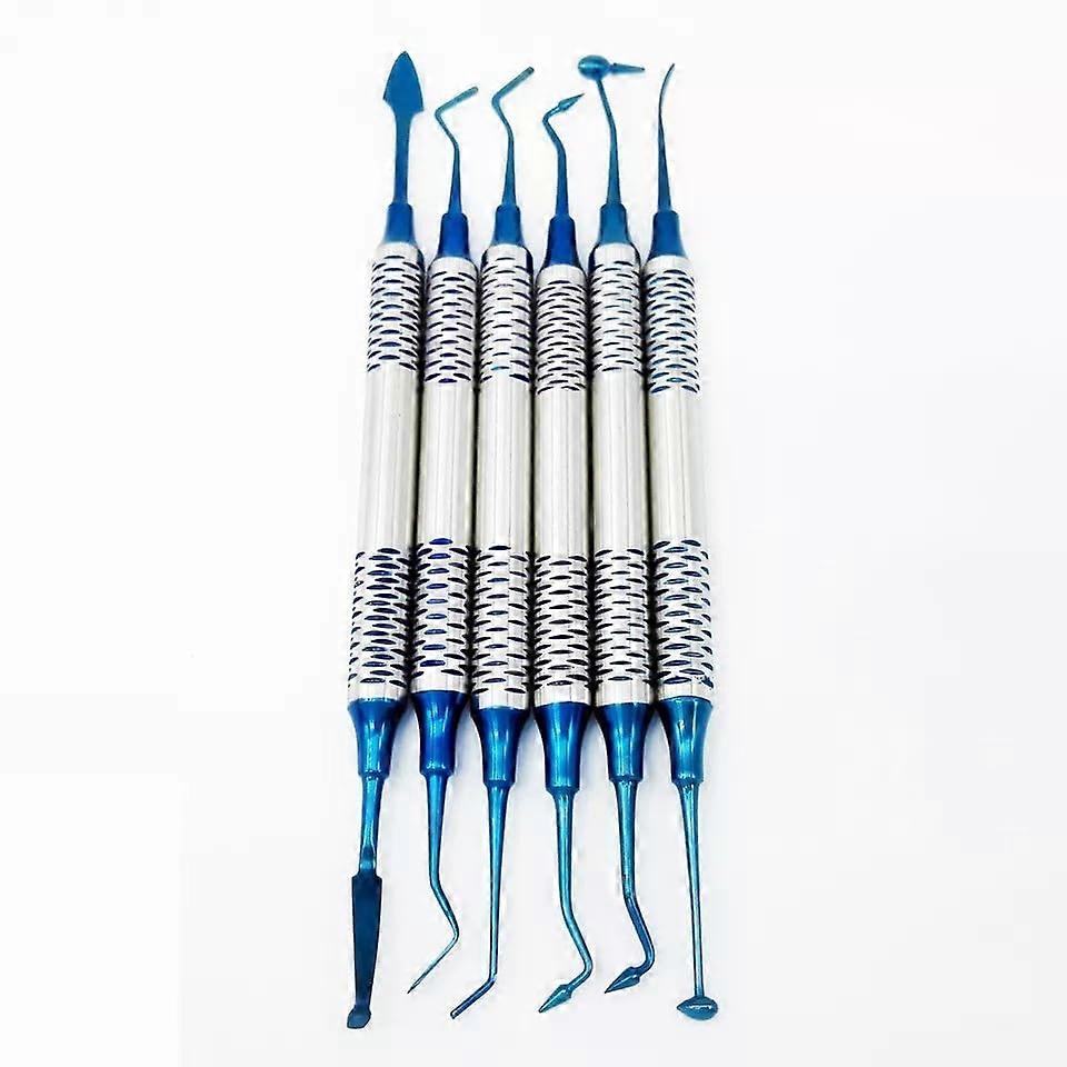6 Pcs Dental Composite Filling Instruments Blue Titanium Coated Ergonomic Restoration Tool Set