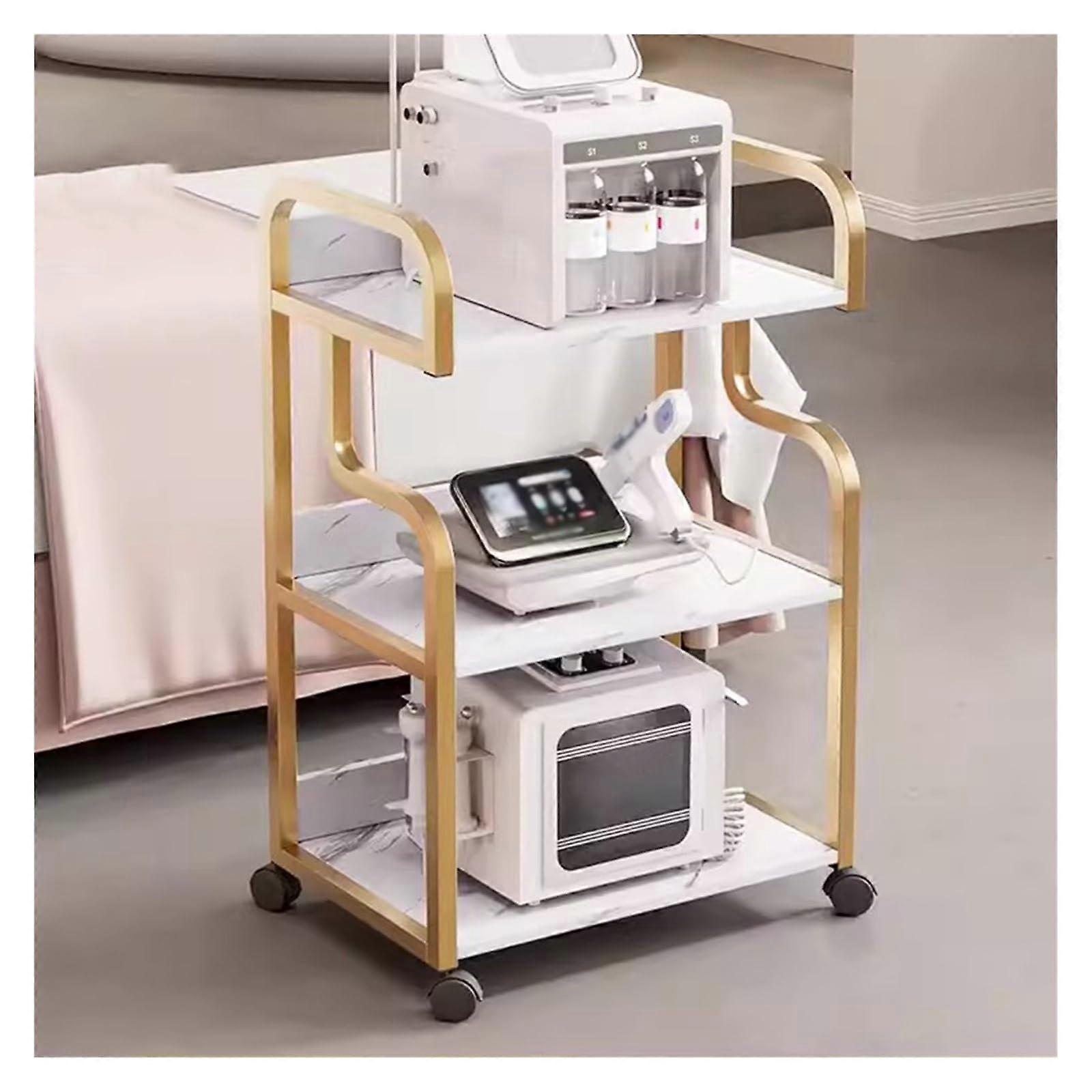 Rolling Storage Cart Gold ThreeTier Metal Utility with Lockable Wheels for Kitchen or Salon