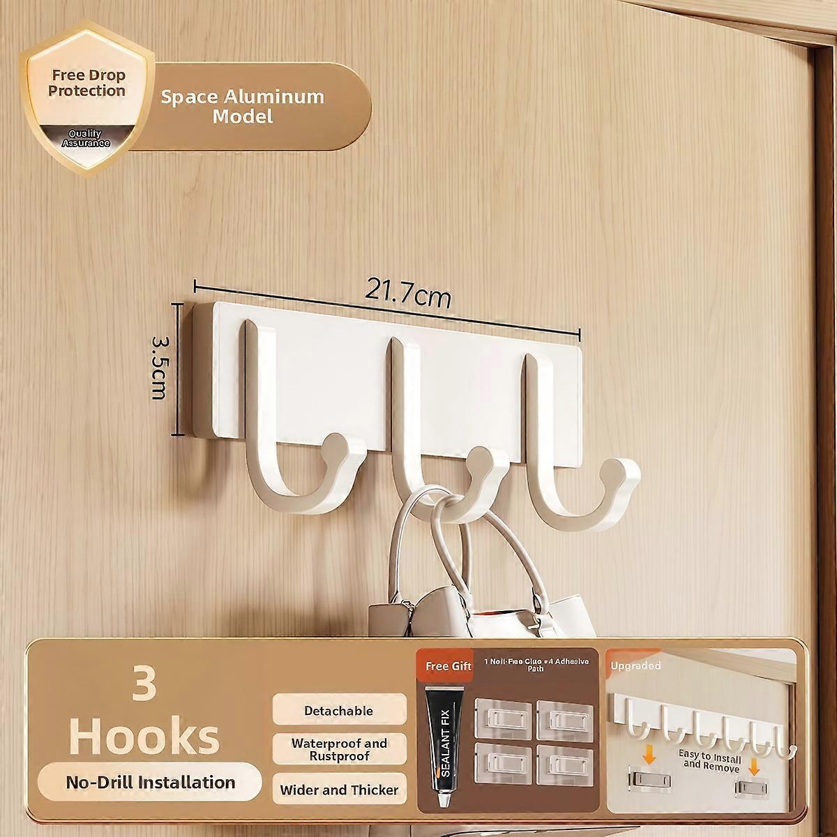 Modern Minimalist Kitchen Wardrobe Wall-Mounted No-Drill Hooks for Clothes Coat Hook Bathroom Bedroom