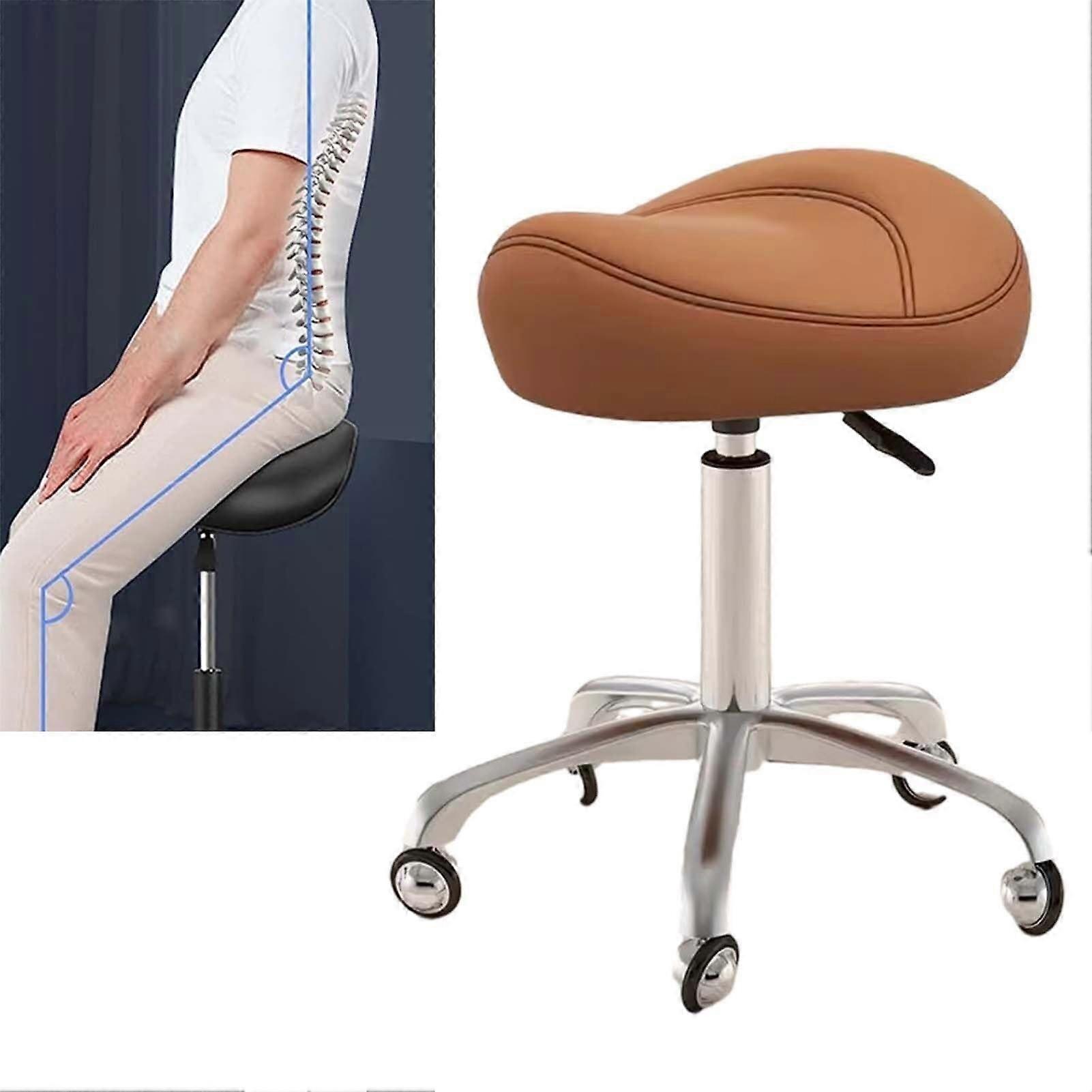 Ergonomic Saddle Stool with Wheels, HeavyDuty Hydraulic Rolling Chair for Clinic Tattoo Studio Brown