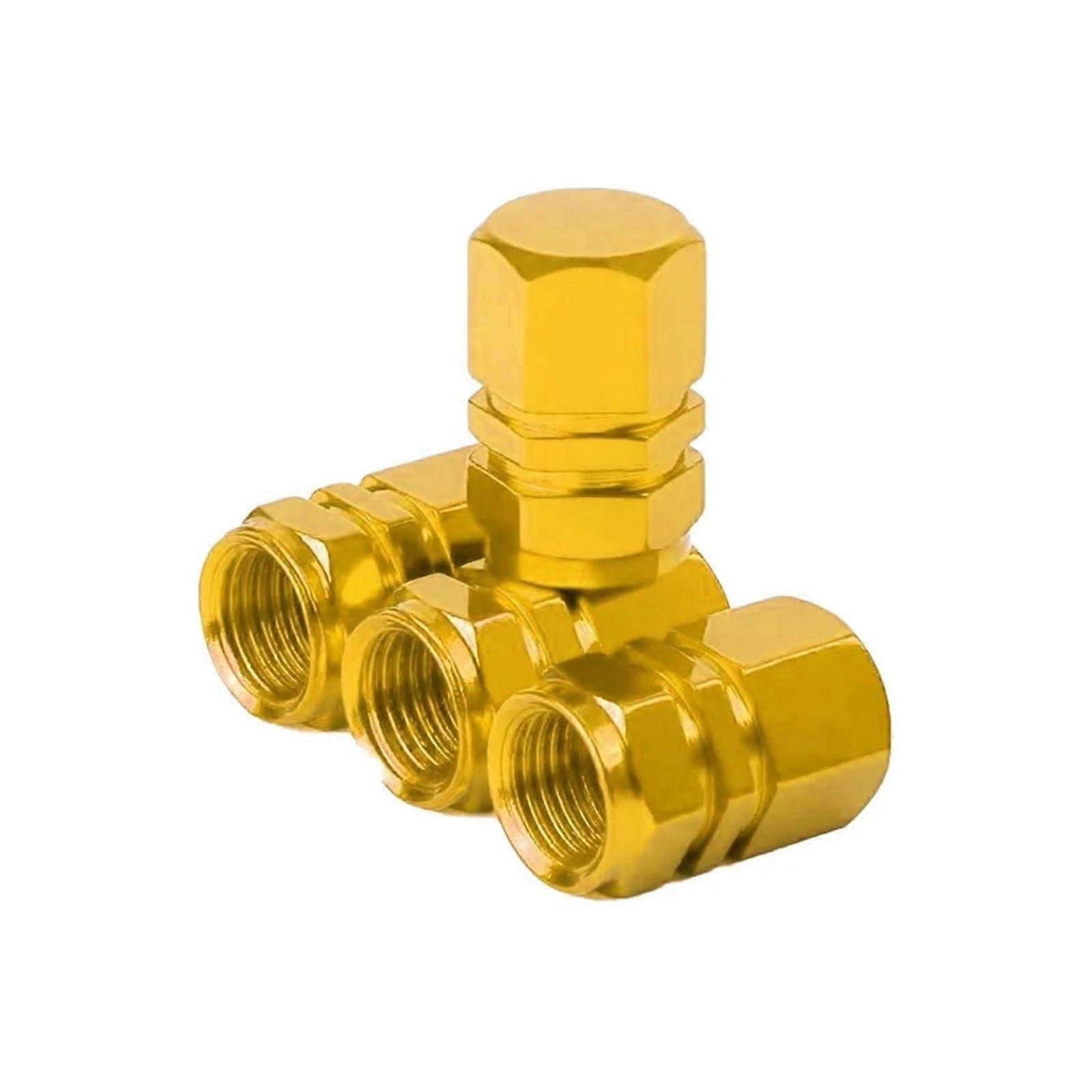 Golden Aluminum Tire Valve Stem Caps Dustproof Protection for Car and Motorcycle Wheels 4PC